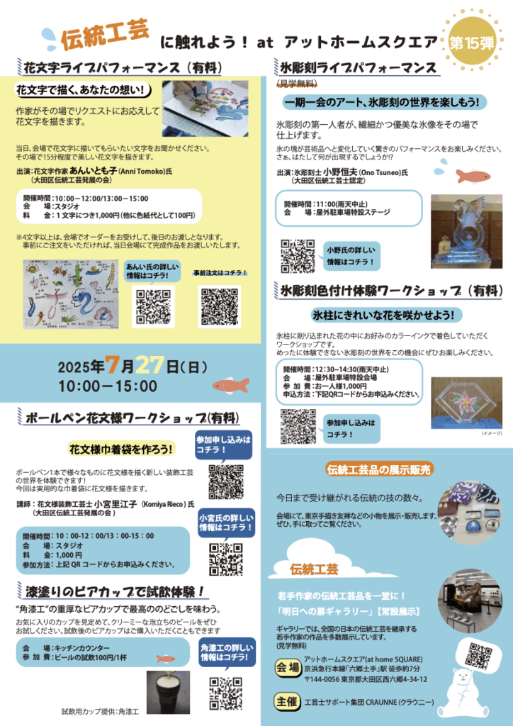 7月27日(日)10:00~15:00に大田区のアットホームスクエアにてイベントを開催いたします!!