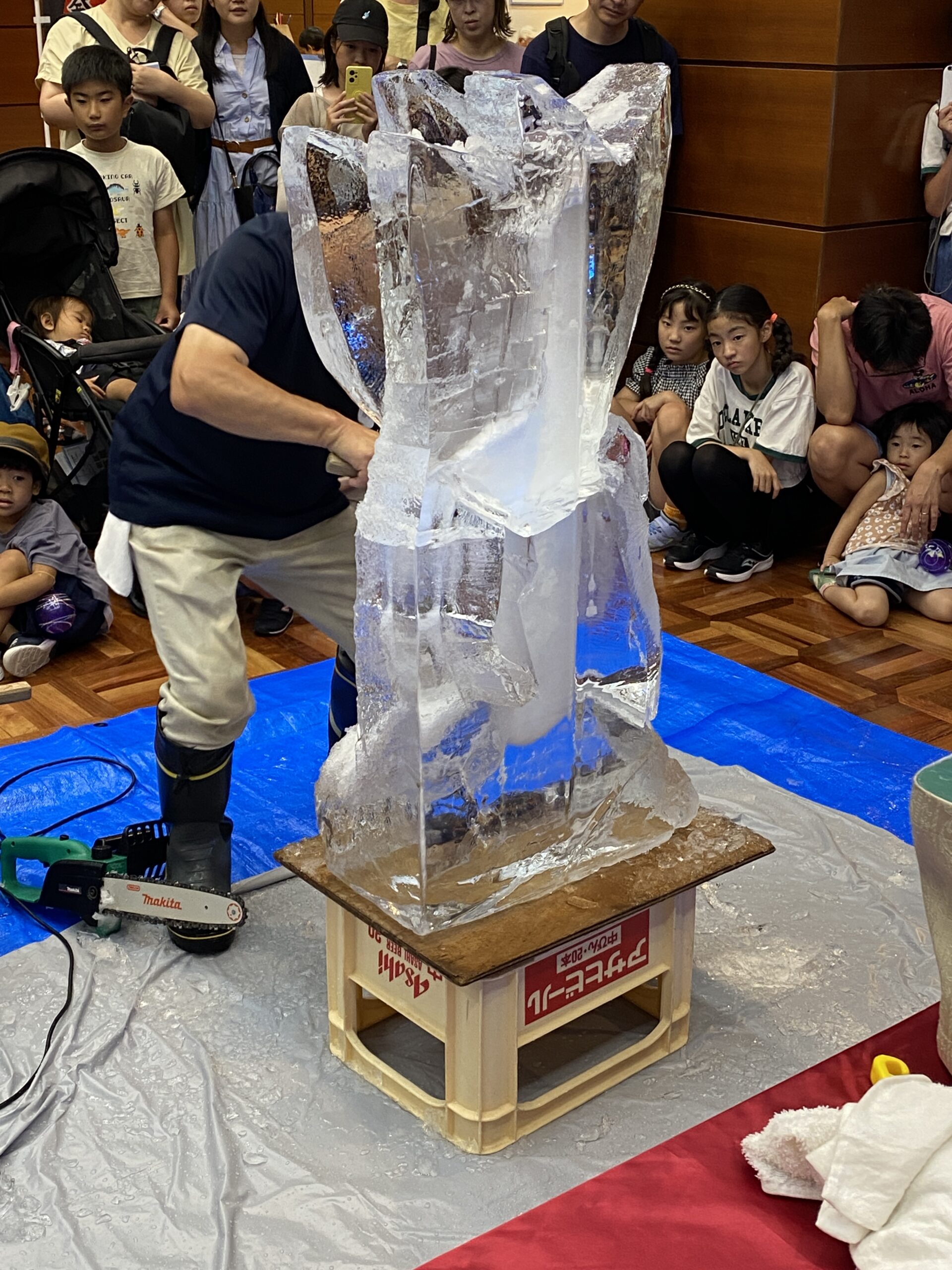 職人:大田区伝統工芸会の小野さん。CMなど数々の氷アートを手がけています。氷を使った企画・検討されている方は、小野さんにお声がけください!