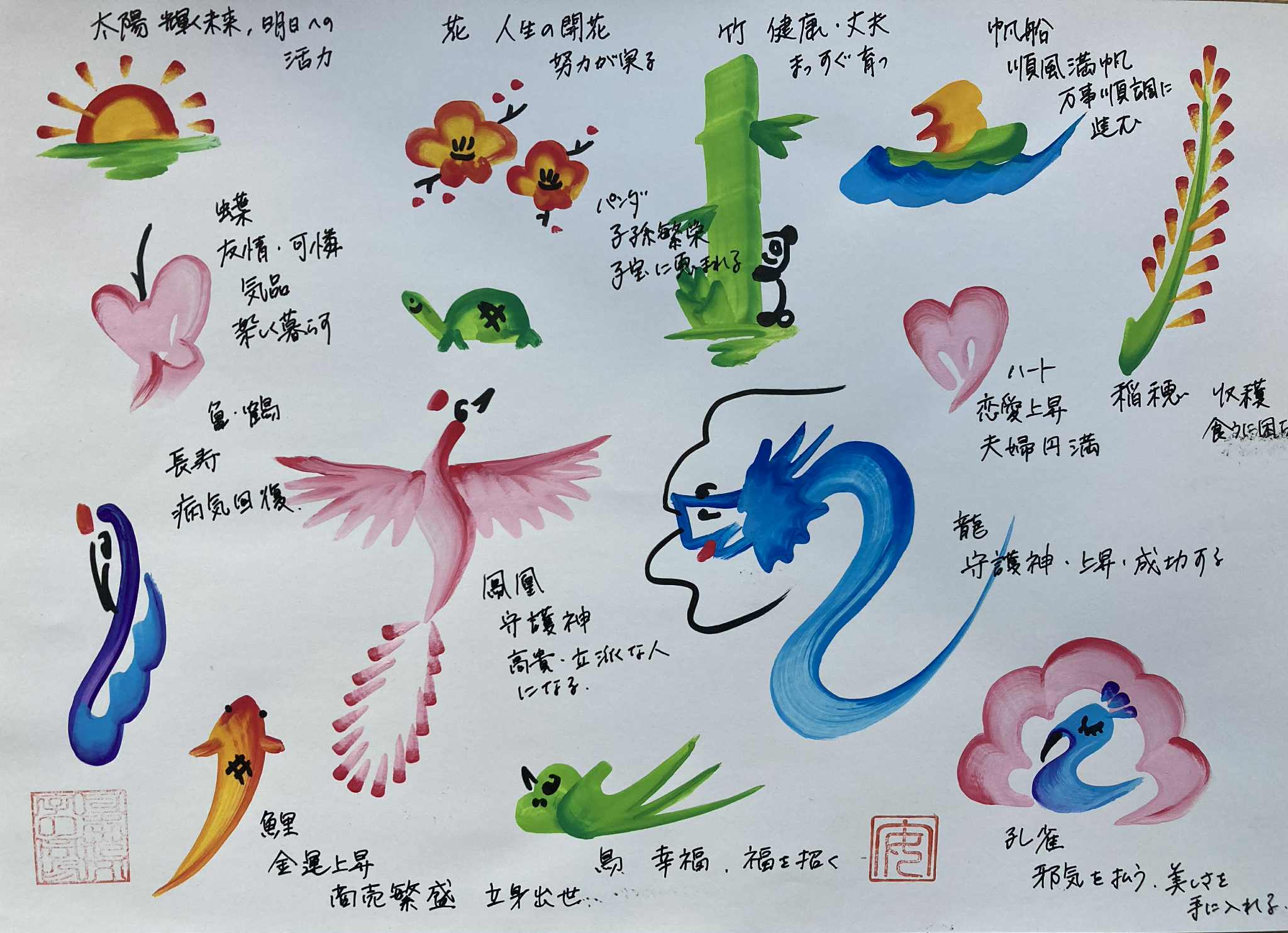 ワークショップでは巾着に花紋様を描いて頂きます。描いたオリジナル花紋様の巾着はその場でお持ち帰り!