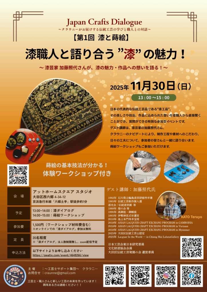 本イベント「Japan Crafts Dialogue」は、クラウニーが届ける“職人と語り合う伝統工芸の学びと対話”シリーズ。